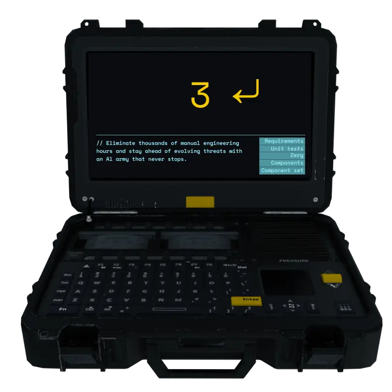 Zerg unleashes a fleet of domain-trained AI engineers that design, test, and self-regenerate mission-critical components, turning month-long sprints into same-day deliveries.